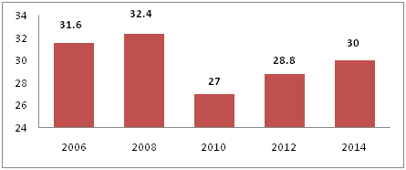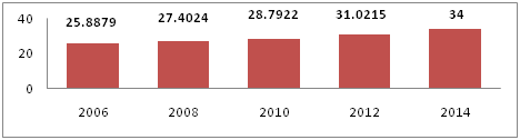 图5 2006-2014美国使用监控设备的人口数量(百万)