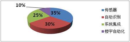 这些技术主要包括传感技术、自动识别技术,系统集成技术和楼宇自动化技术。传感技术广泛的应用于电子安全行业的各类应用,包括检测未授权的访问,入侵控制,火灾发生,一氧化碳气体泄漏以及其他。其中,使用传感技术的电子安全设备包括被动红外移动探测器,玻璃破碎探测器,烟雾或火灾探测器,一氧化碳检测仪,微声传感器,围栏入侵探测器,微波传感器及其他。近年来展现了被用于不同定制应用的检测技术,包括门窗传感器,淹水和冰冻传感器,车库门倾斜传感器,凹门传感器及其他。据SIA预测,2014年传感器所占市场份额将达到35%。